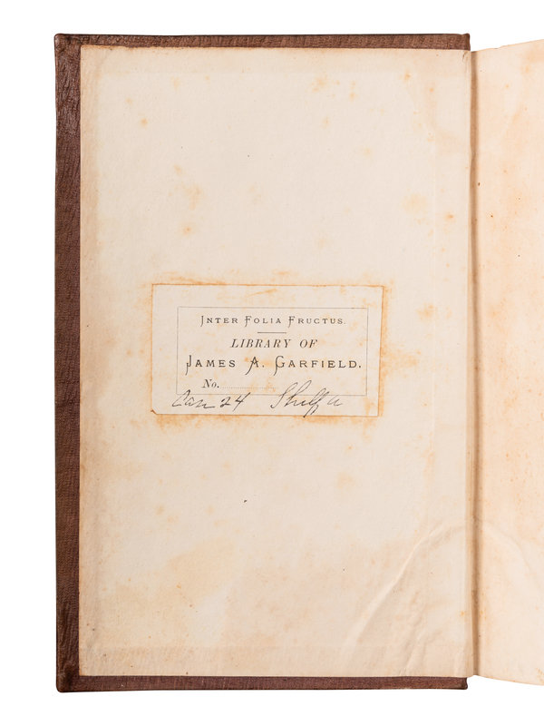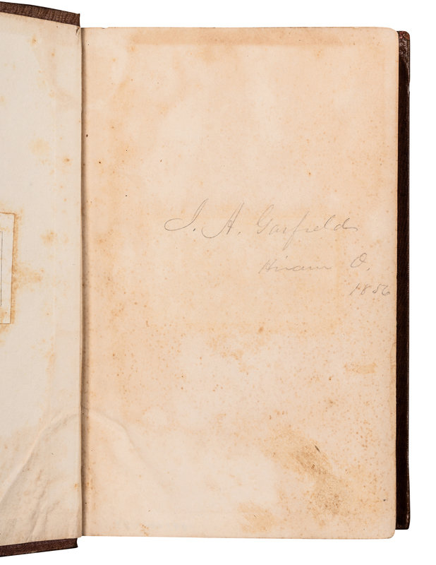 JAMES GARFIELDS COPY, INSCRIBED BY HIM on pencil on front free endpaper: “J. A. Garfield / Hiram O. / 1856”. With his bookplate (Inter Folia Fructus. Library of James A. Garfield” and shelfmark in ink. Books from Garfield’s library are scarce.
