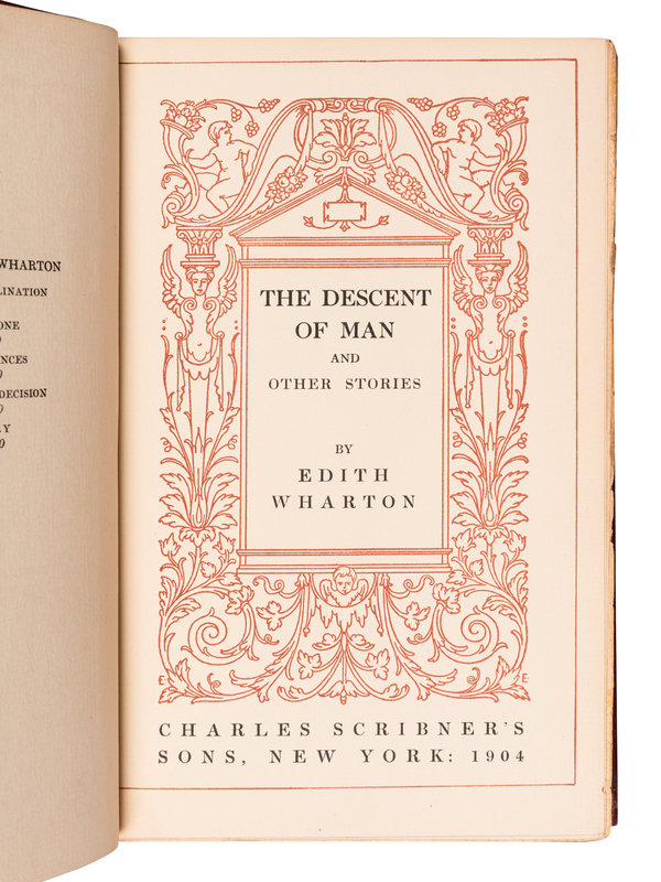 [HARDING, Warren G. (1865-1923), his copy]. WHARTON, Edith (1862-1937). The Descent of Man and Other Stories. New York: Charles Scribner’s Sons, 1904.