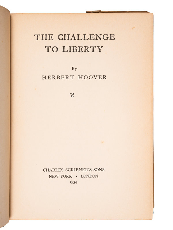 HOOVER, Herbert (1874-1964). The Challenge to Liberty. New York and London: Charles Scribner's Sons, 1934.