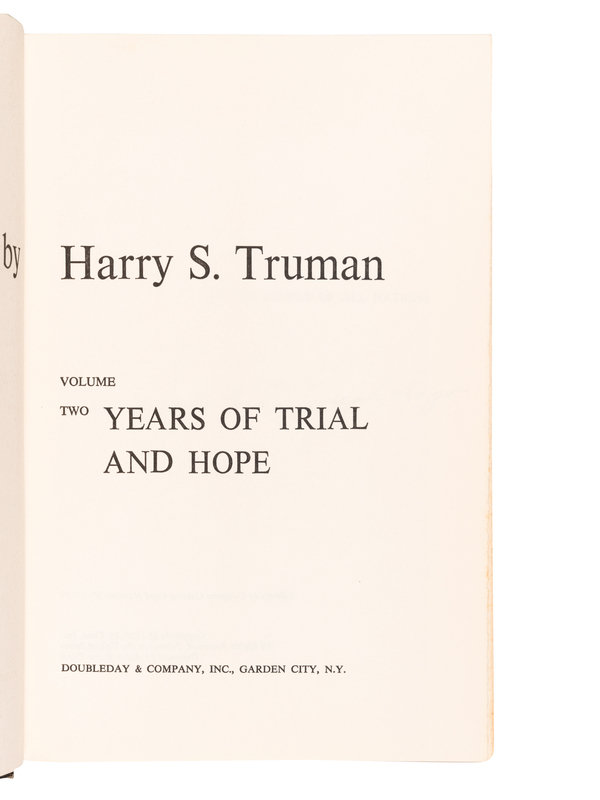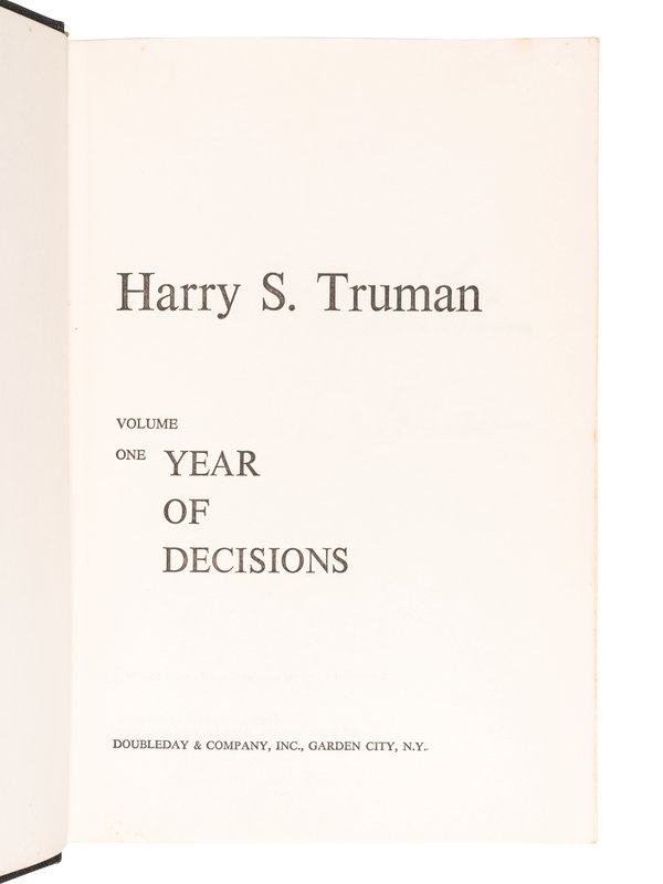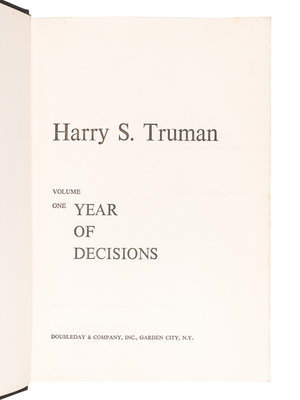 TRUMAN, Harry S. (1884–1972). [Memoirs:] Year of Decision. --Years of Trial and Hope. Garden City, New York: Doubleday & Company, Inc., 1955–56.