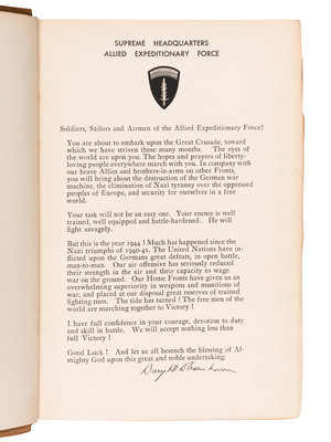 FIRST EDITION, LIMITED ISSUE, number 1,340 of 1,426 copies, SIGNED BY EISENHOWER on the inserted D-Day Order as issued.