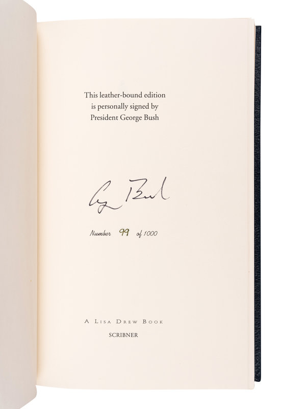 LIMITED EDITION, number 99 of 1,000 copies SIGNED ON LIMITATION PAGE BY GEORGE H.W. BUSH. All the Best comprises a collection of writings including diary entries, letters, and memos which begin with Bush's service during World War II and end shortly after his son Jeb's election as governor of Florida in 1998.