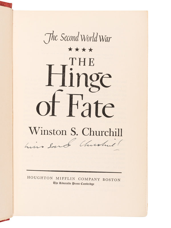 CHURCHILL, Winston S. (1874-1965). The Second World War: The Hinge of Fate. Boston: Houghton Mifflin, 1950.