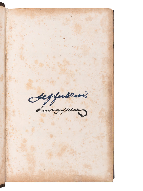JEFFERSON DAVIS’S COPY, SIGNED (“Jefferson Davis / Secretary of War”) on front free endpaper (some ink bleed). Davis served as Secretary of War under President Franklin Pierce from 1853 to 1857. This volume is the Senate Issue, Executive Document No 1, 33d Congress, 2d Session, Part I, containing the report of the Secretary of the Interior.