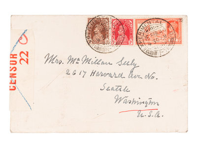 One page, 110 x 164mm; with original envelope addressed in another hand (possibly by the recipient), docketed on verso, with censor’s label.