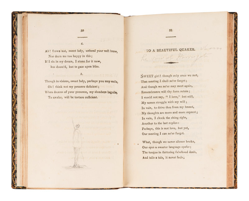 8vo (181 x 108 mm). Half-title, woodcut head-and-tail-pieces. (Possibly lacking b[4], some light toning.) Contemporary calf gilt, stamped in black and blind, edges marbled (some light wear). Provenance: Elizabeth Bridget Pigot (1783-1866) friend and biographic source for Lord Byron (signature, several graphite drawings including on half-title, annotations).