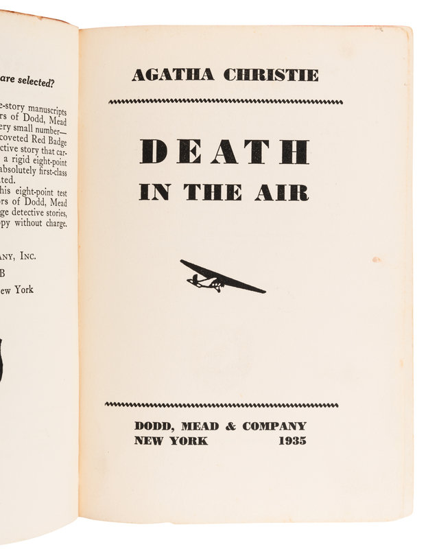 The Seven Dials Mystery. NY, 1929. -- The Mysterious Mr. Quin. NY, 1930. -- Death in the Air. NY, 1935. -- Ordeal by Innocence. L, 1958. -- The Mirror Crack'd from Side to Side. L, 1962. -- By the Pricking of my Thumbs. L, 1968. -- Poirot's Early Cases. L, 1974. -- And 6 others. Together, 13 works in 13 volumes, all 8vo, all in original bindings, most with dust jackets, most FIRST EDITIONS or FIRST AMERICAN EDITIONS, condition generally good. Complete list available upon request.