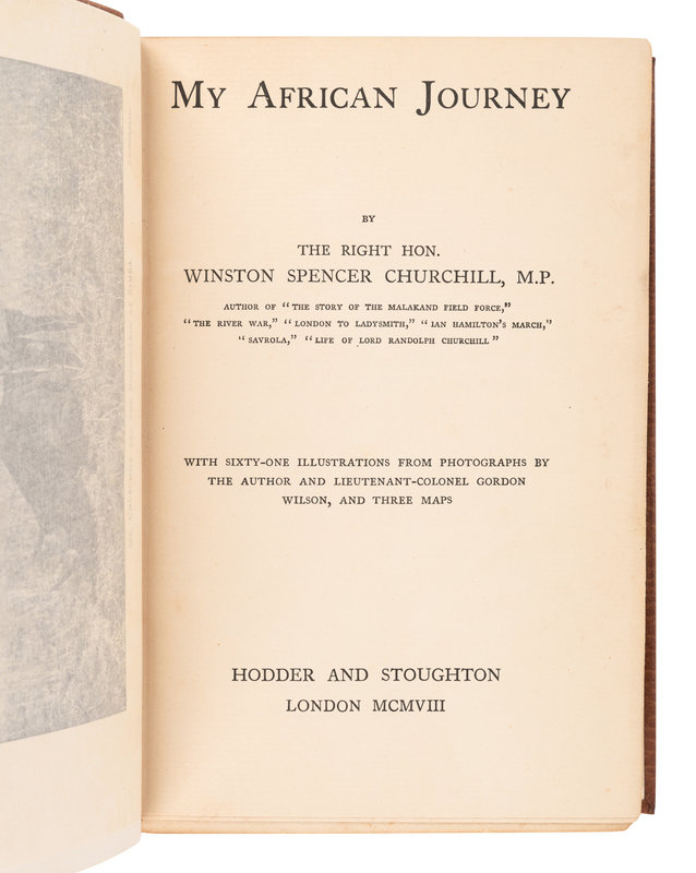 CHURCHILL, Winston L. S., Sir (1874-1965). My African Journey. London: Hodder and Stoughton, 1908.