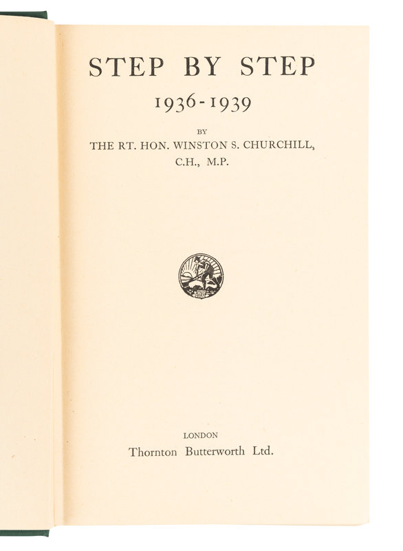 CHURCHILL, Winston L. S., Sir (1874-1965). Step by Step 1936-1939. London: Thornton Butterworth Ltd., 1939.