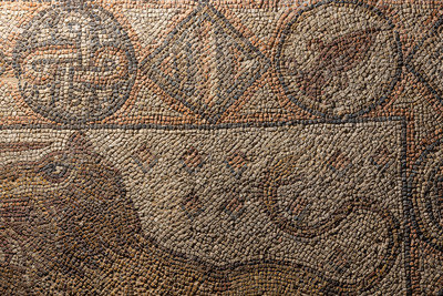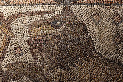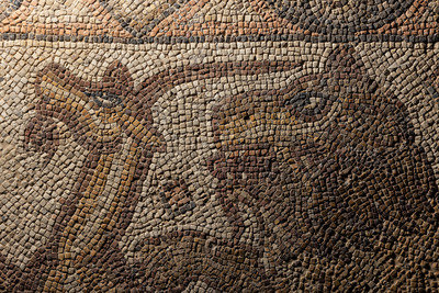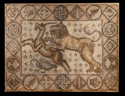 A Late Roman Stone Mosaic of a Lion Hunting Prey