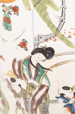 each with a baluster body and painted to show figures in gardens.