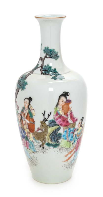 A Chinese Famille Rose 'Ladies in the Garden' Porcelain Bottle Vase