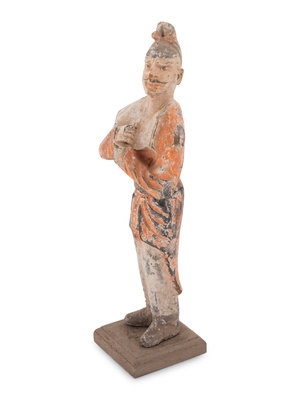 A Chinese Painted Pottery Figure of a Foreign Groom
