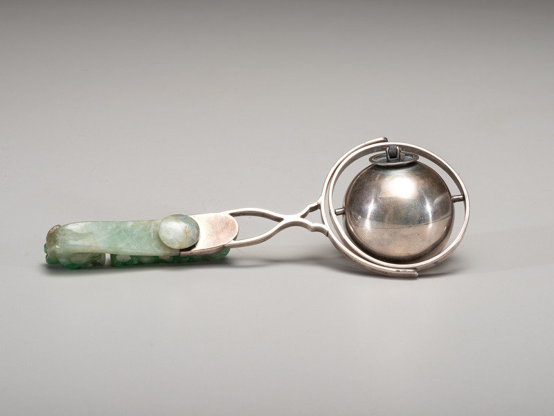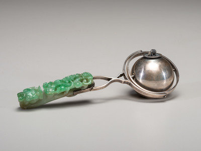 A Chinese Silver and Carved Jade Table Cigarette Lighter Identified to Eleanor Roosevelt