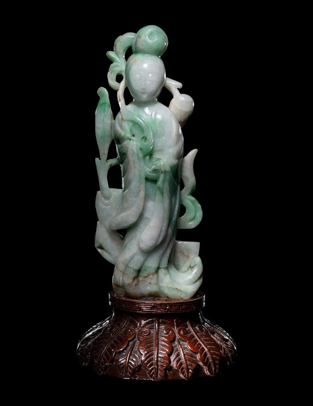 A Chinese Apple Green and Celadon Figure of Female Immortal