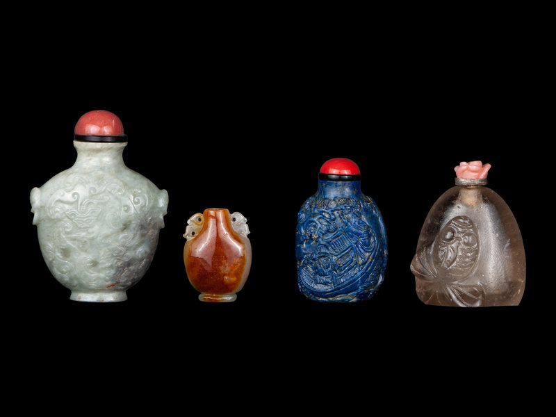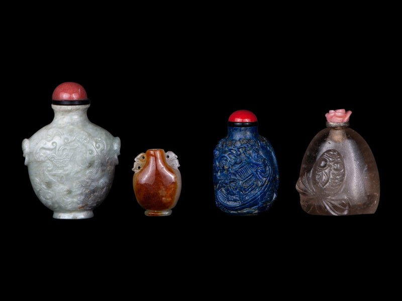 comprising two jadeite examples, one rock crystal example and one lapis lazuli example.