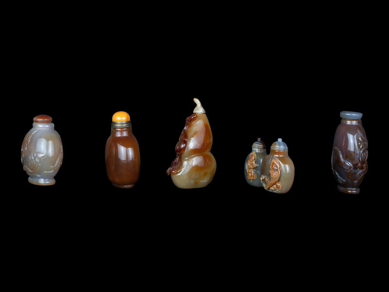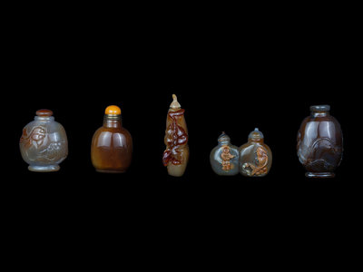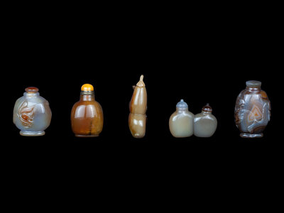 comprising a gourd-form example, a double-vase form example, an oval form example and two baluster examples.
