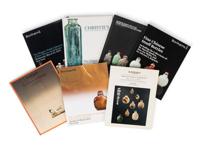A group of auction catalogues and reference works about Chinese snuff bottles and glass