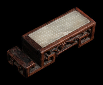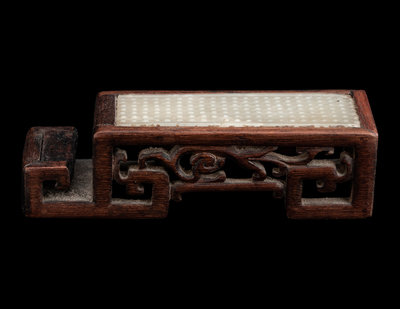 A Chinese Celadon Jade Sword Fitting Mounted as Ink-Cake Stand