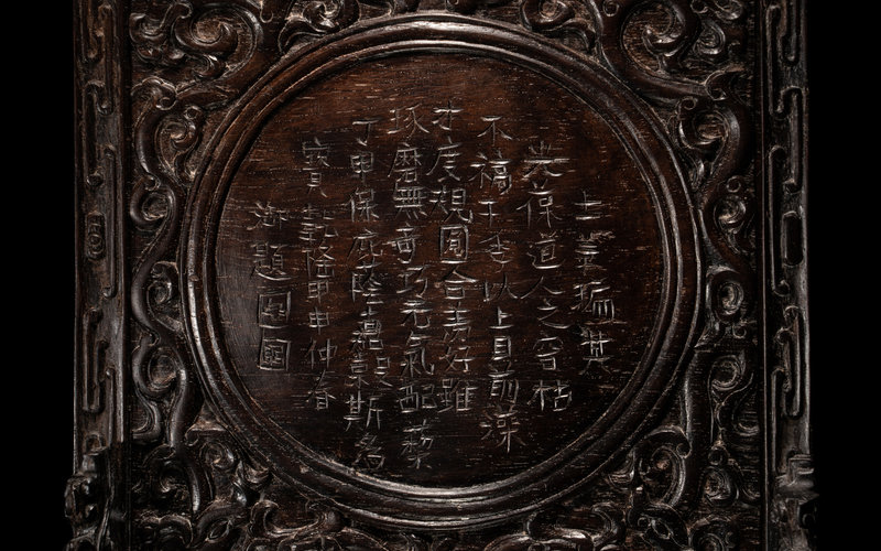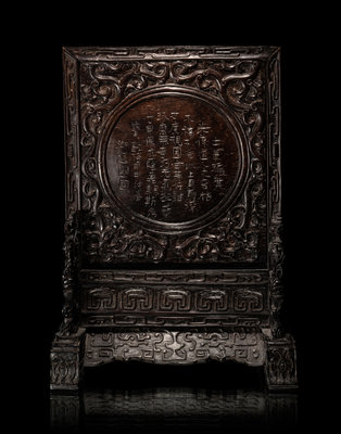 晚清-民國 紅木嵌玉璧仿古式硯屏