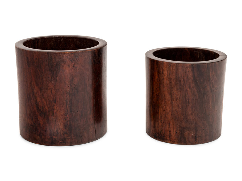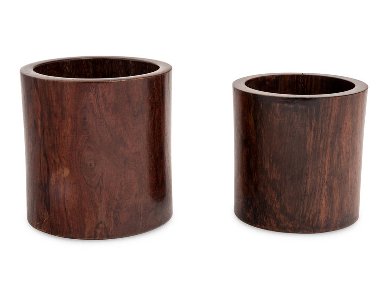 Two Chinese Hardwood Brushpots, Bitong