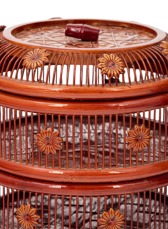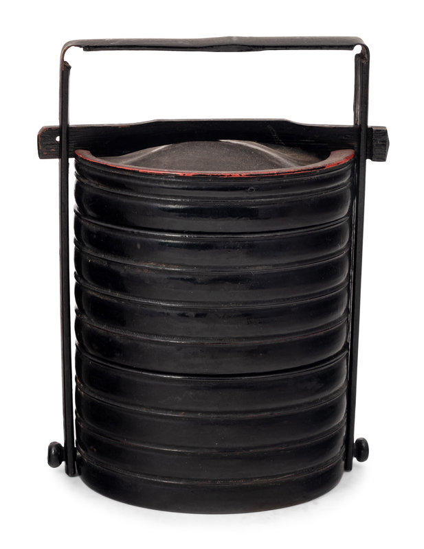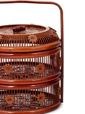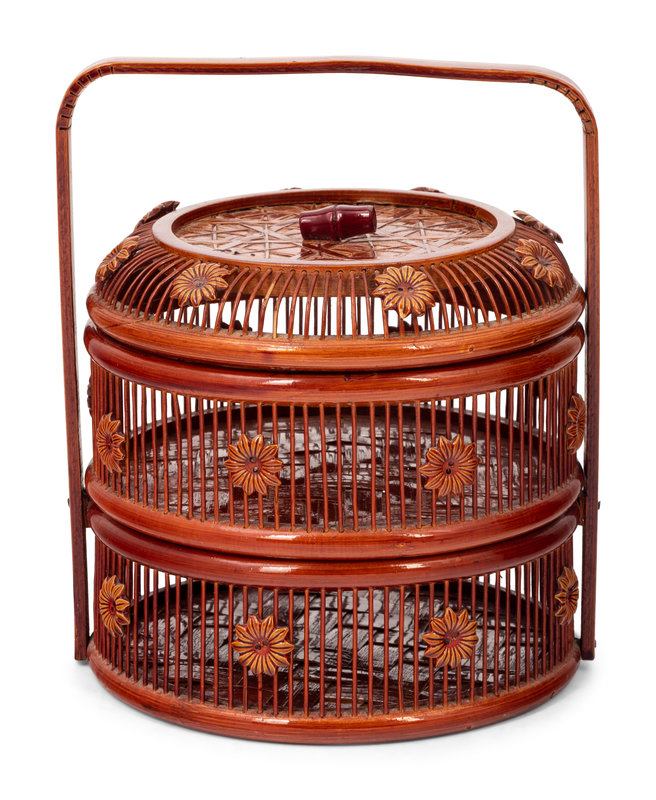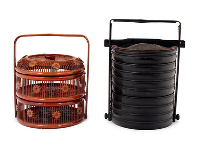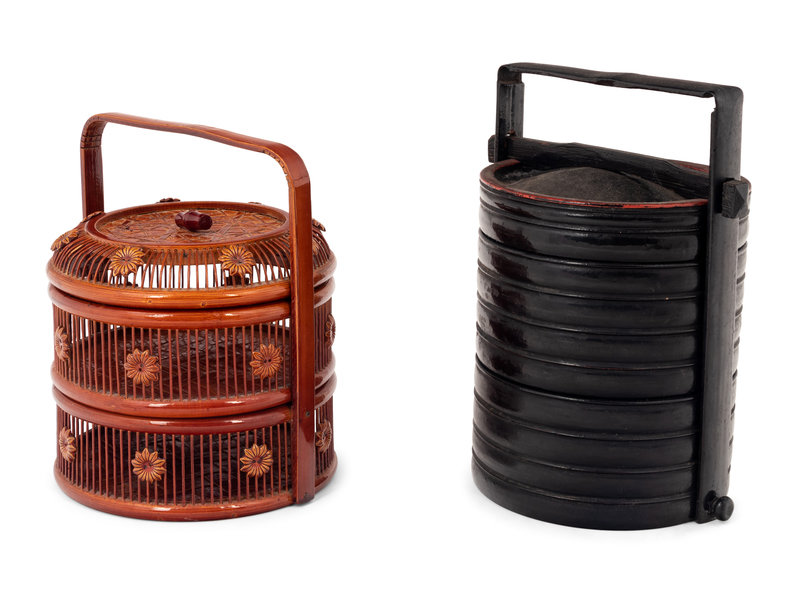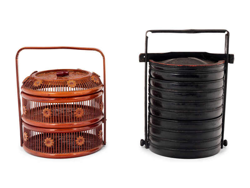 Two Chinese Lacquered Wood and Bamboo Food Baskets