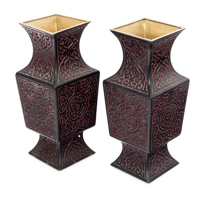 剔犀如意紋方瓶一對