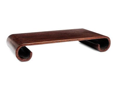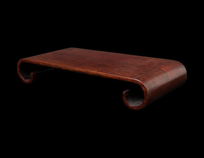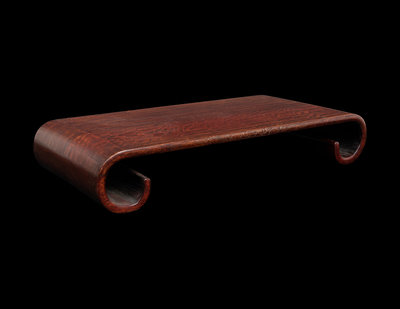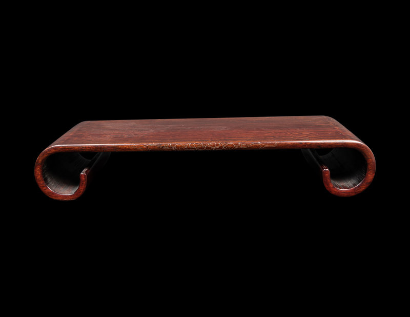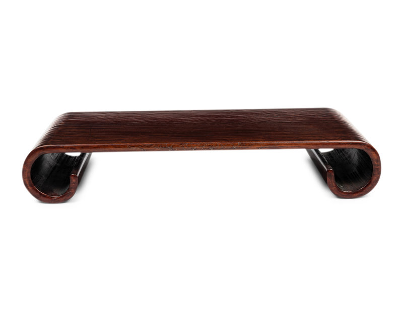 A Chinese Silver Wire Inlaid Scroll-Form Hardwood Stand