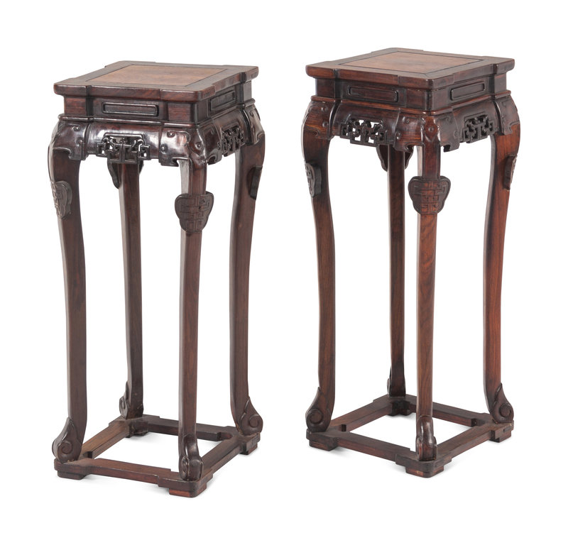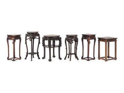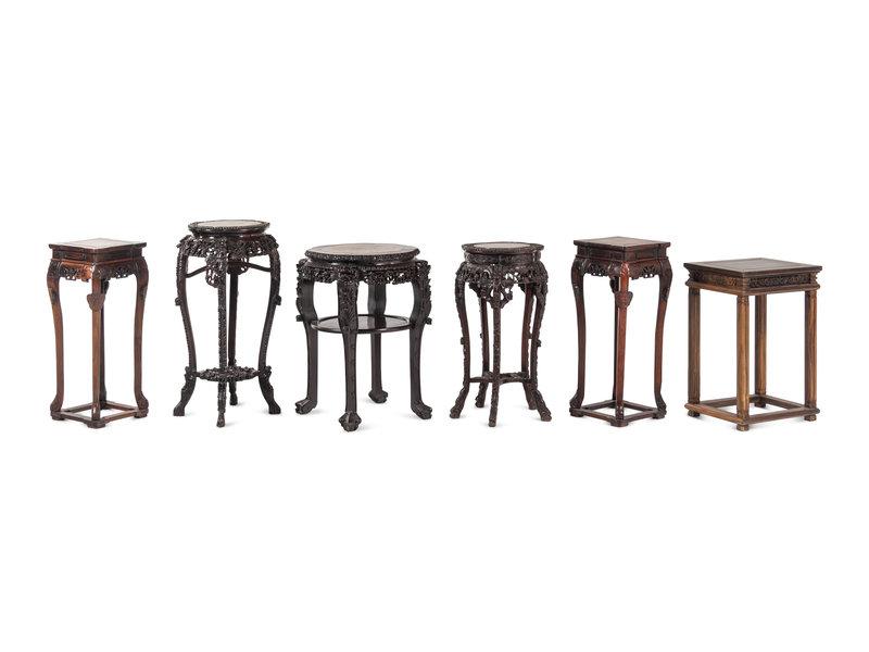 comprising of a pair of square top, three single ones of rounded top, and one single one of rectangular top, all have intricate hand carved details throughout.