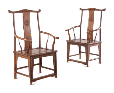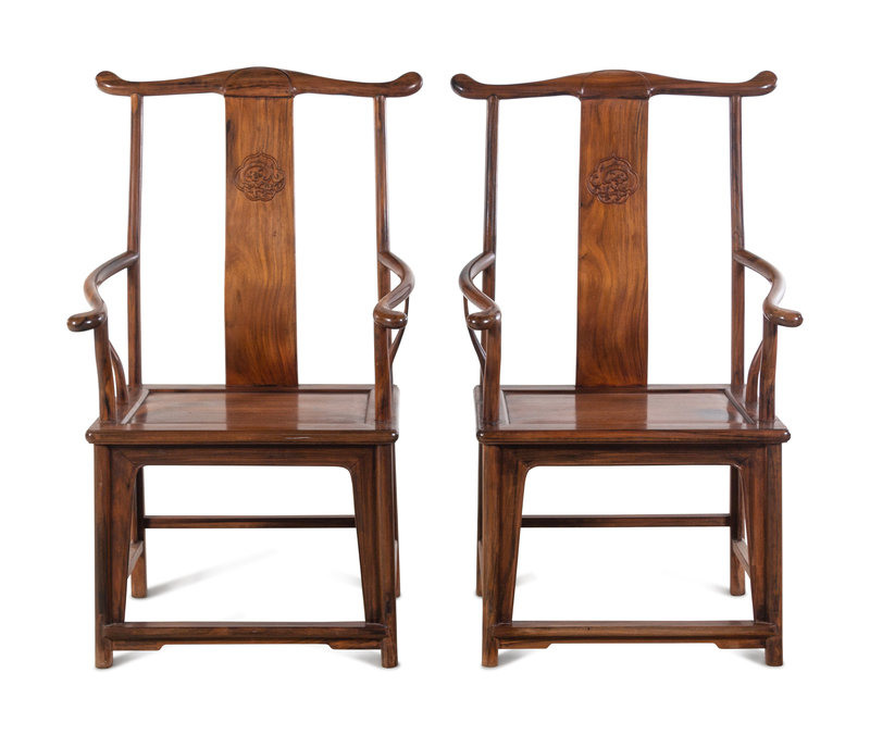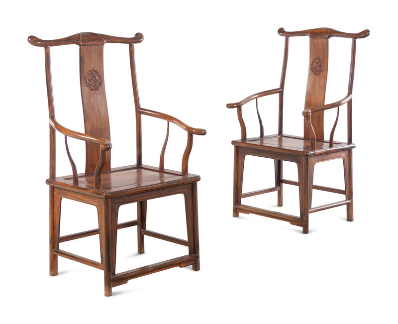 A Pair of Chinese Huali Wood Official's Hat Chairs, Sichutouguanmaoyi