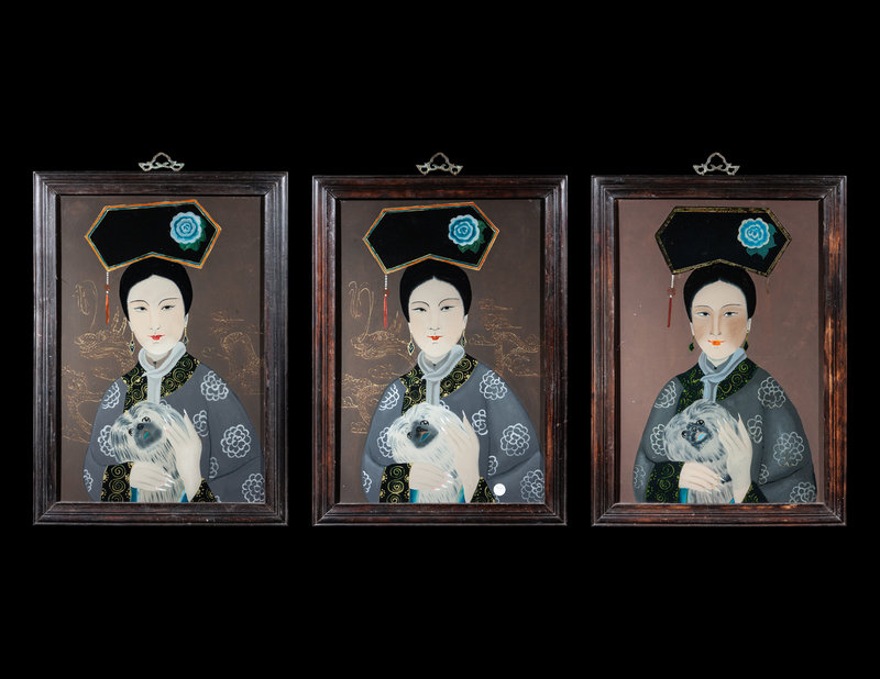 Three Chinese Reverse Glass Paintings