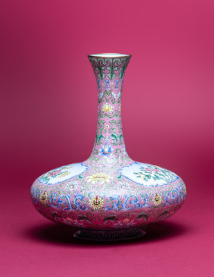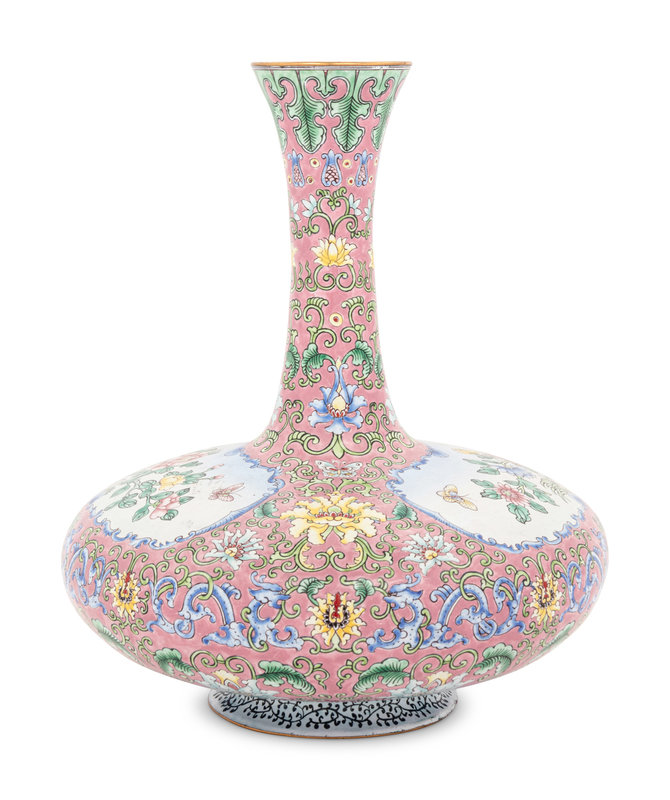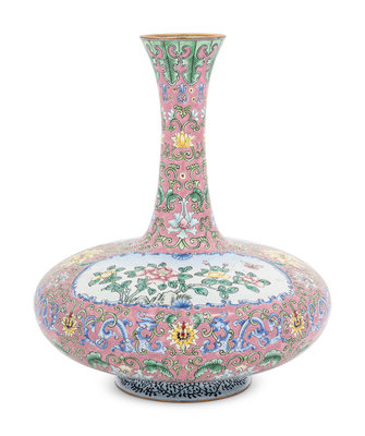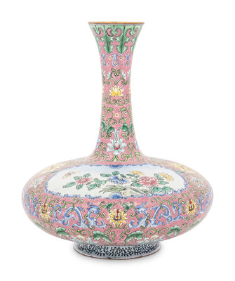 A Pink Ground Canton Enamel Bottle Vase, Biqiping