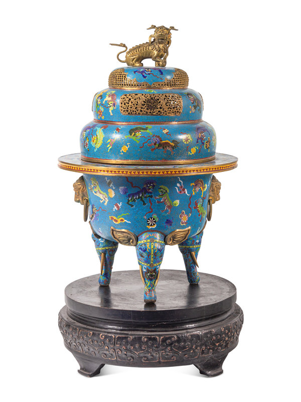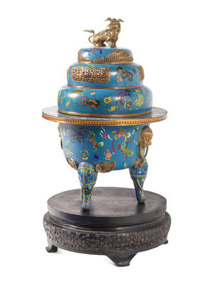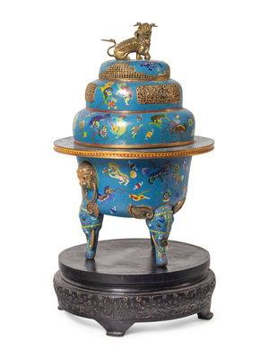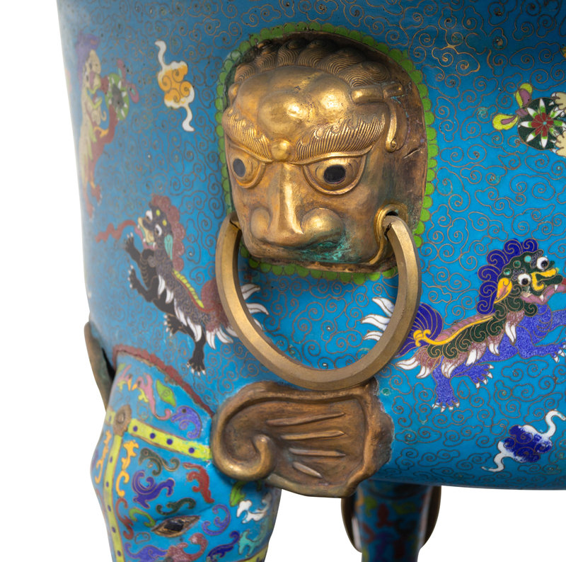 A Large Chinese Cloisonné Enamel Tripod Censer