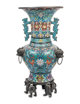 A Large Chinese Cloisonné Enamel Gu-Form Vase