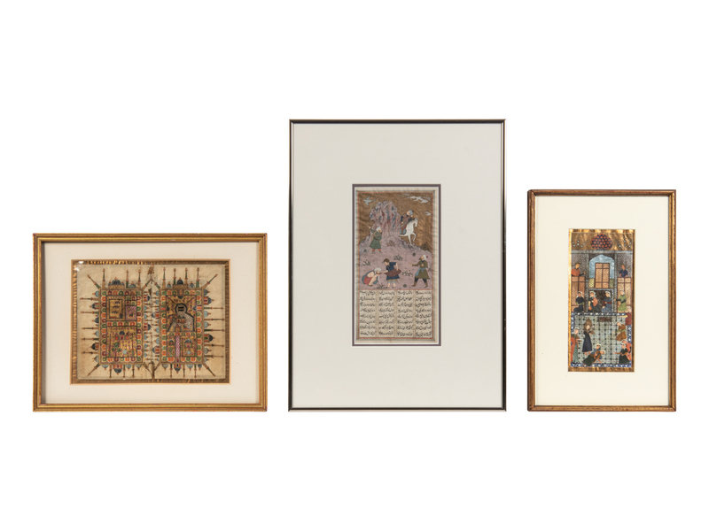 Three Framed Persian Illuminated Pictorial Manuscripts