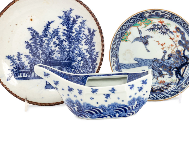 comprising a boat-form water coupe, three plates and five flori-form shallow bowls.