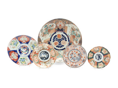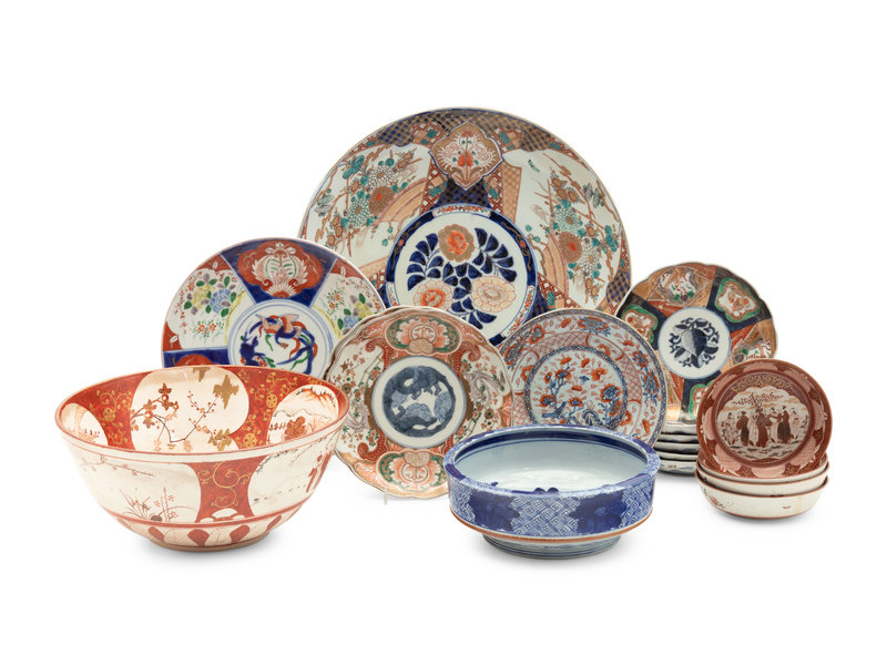 comprising one blue and white bowl, five kutani bowls, and 11 imari plates.
