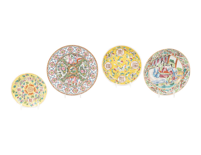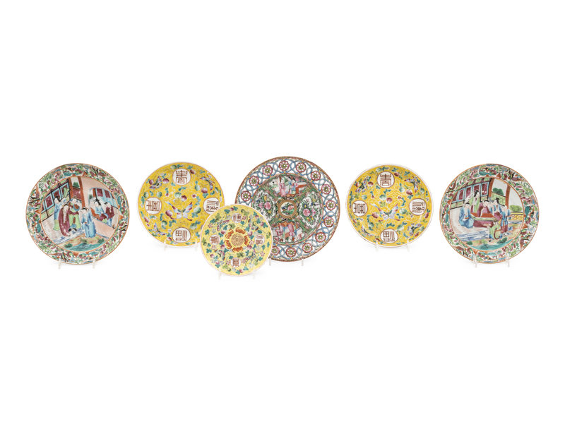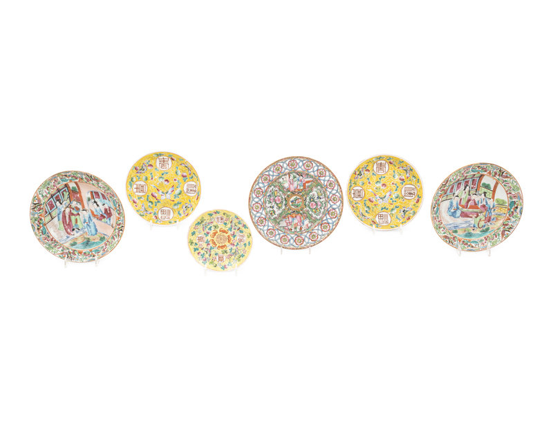 comprising three famille jaune examples and three rose medallion examples.