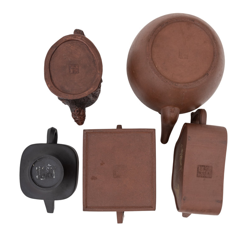 Five Chinese Yixing Zisha Pottery Teapots