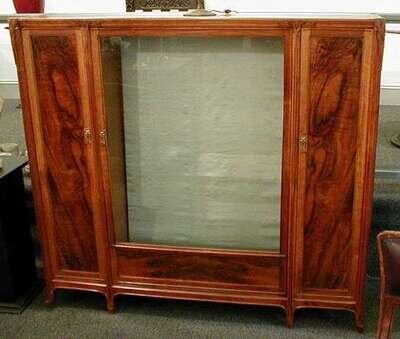 AN ART NOUVEAU ROSEWOOD & FRUITWOOD CABINET