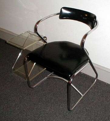 With tubular chrome frame and black vinyl upholstered seat and back, labeled Lloyd, h: 30 in.