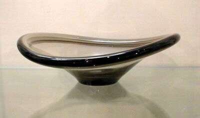Each of semi-circular flaring form in smoky gray glass, one stickered, each engraved "Holmegaard" and cipher, dated 1956 & 1960, dia: 9.7 in.