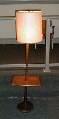 Pole shaft and rectangular shelf on a round, weighted base, height with shade: 58.5 in.
