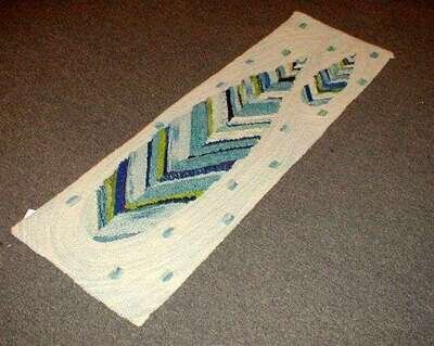 With leaf designs in varying shades of blue, 21 x 70 in.