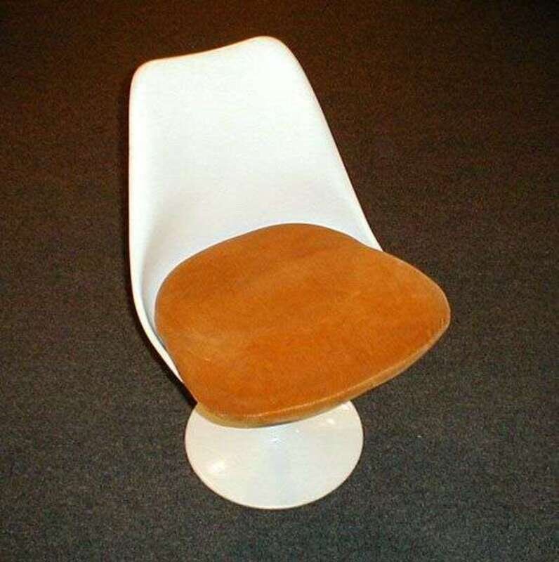An assembled set of seven in molded white fiberglass with variously upholstered seats, h: 31.5 in.