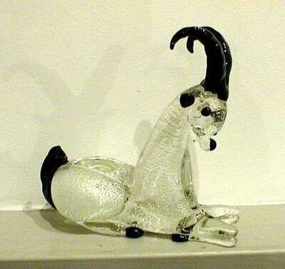 A recumbent deer, the body with internal silver flecks and appendages in amythest, h: 6.75, l: 7 in.