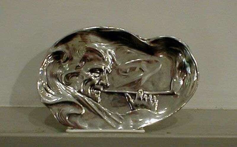 Oblong, with an old man smoking a pipe, the smoke encircling his head, marked "HB STERLING 925 FINE," l: 7.75 in.