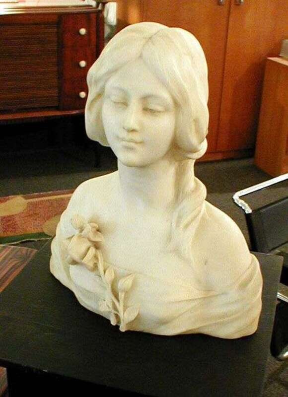 The bust of a young woman with a rose at her breast, indistinct signature to reverse, h: 12 in.