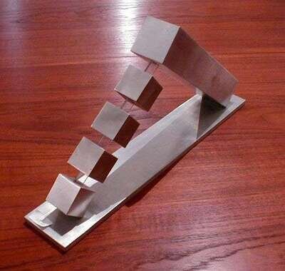 Aluminum & glass, stamped, edition 7/10, damaged glass, l: 17 in.