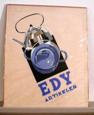 Gouache on paper advertising "EDY ARTIKELEN" picturing a teapot and cooking pot, unframed: 17.5 x 21.5 in.